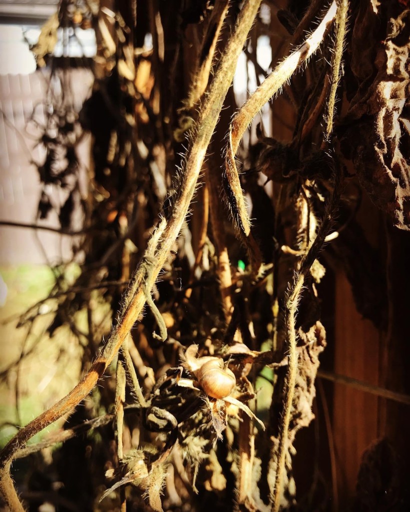 My little corner of beauty has faded away, succumbing to the transitional nudges of the autumnal winds. The flowering vine that took my breath away each summer morning has now taken its own final breath, laying itself down in the frigidity that now comes with the darkness of the nights.